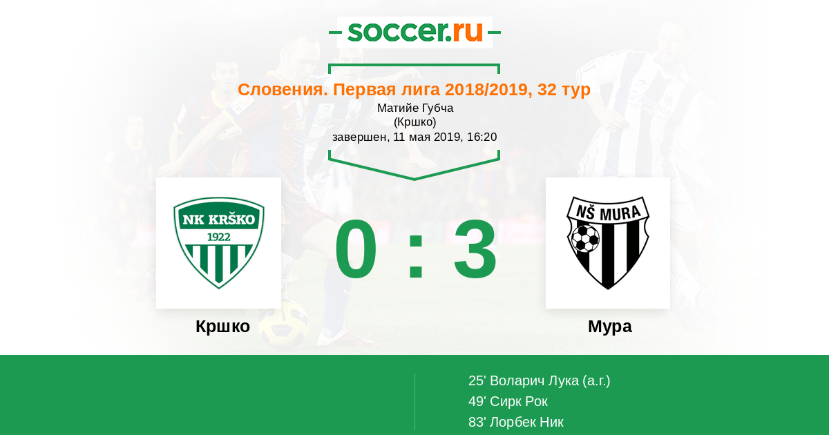 Протокол матча Кршко против Мура
