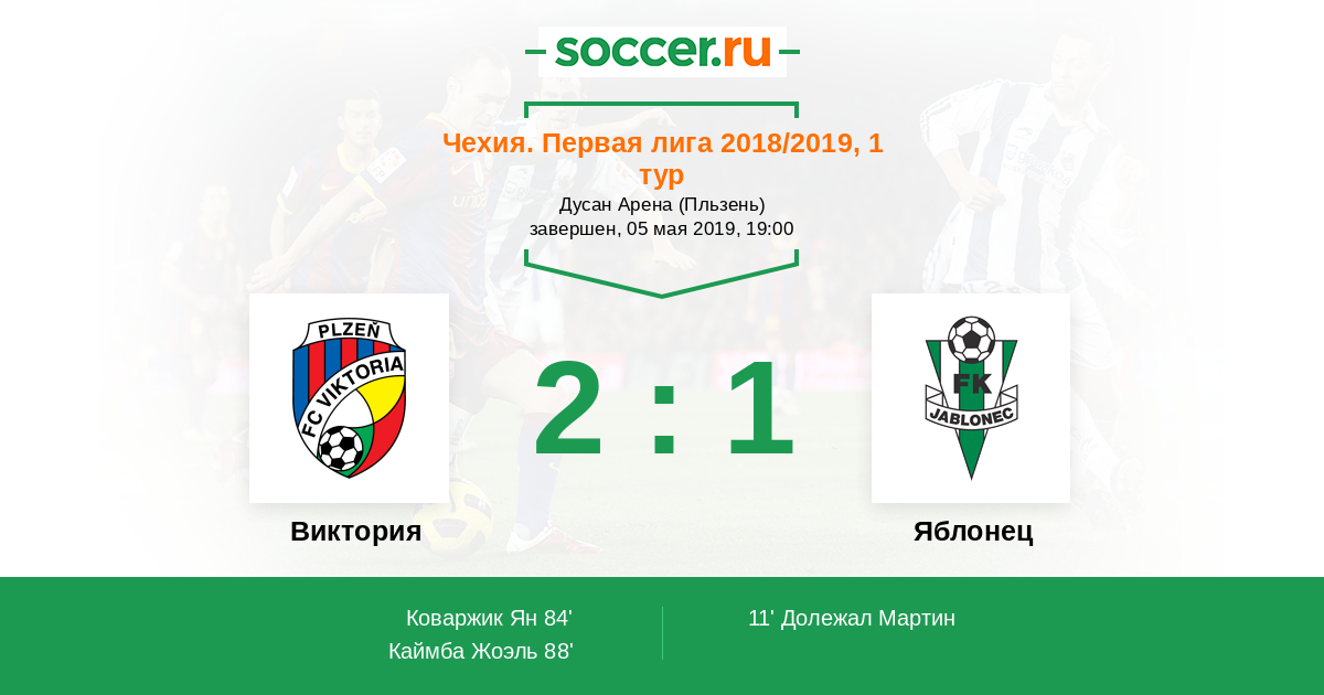 Протокол матча Виктория против Яблонец