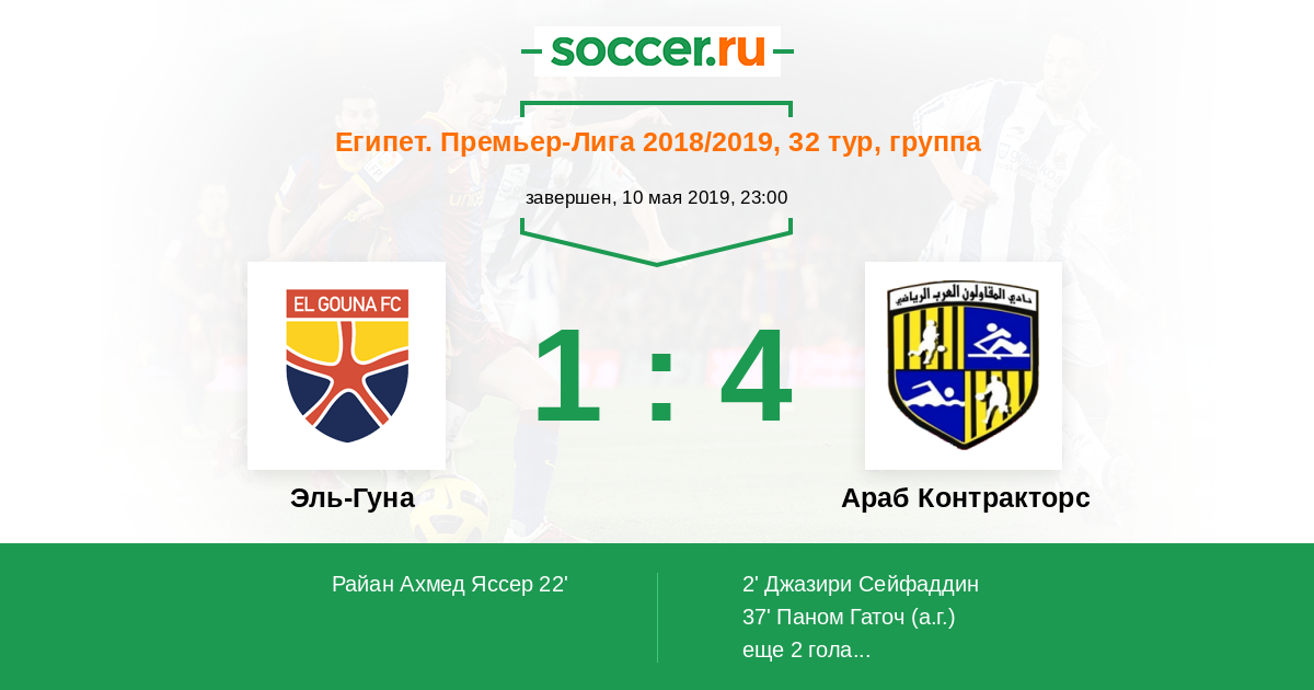 Протокол матча Эль-Гуна против Араб Контракторс