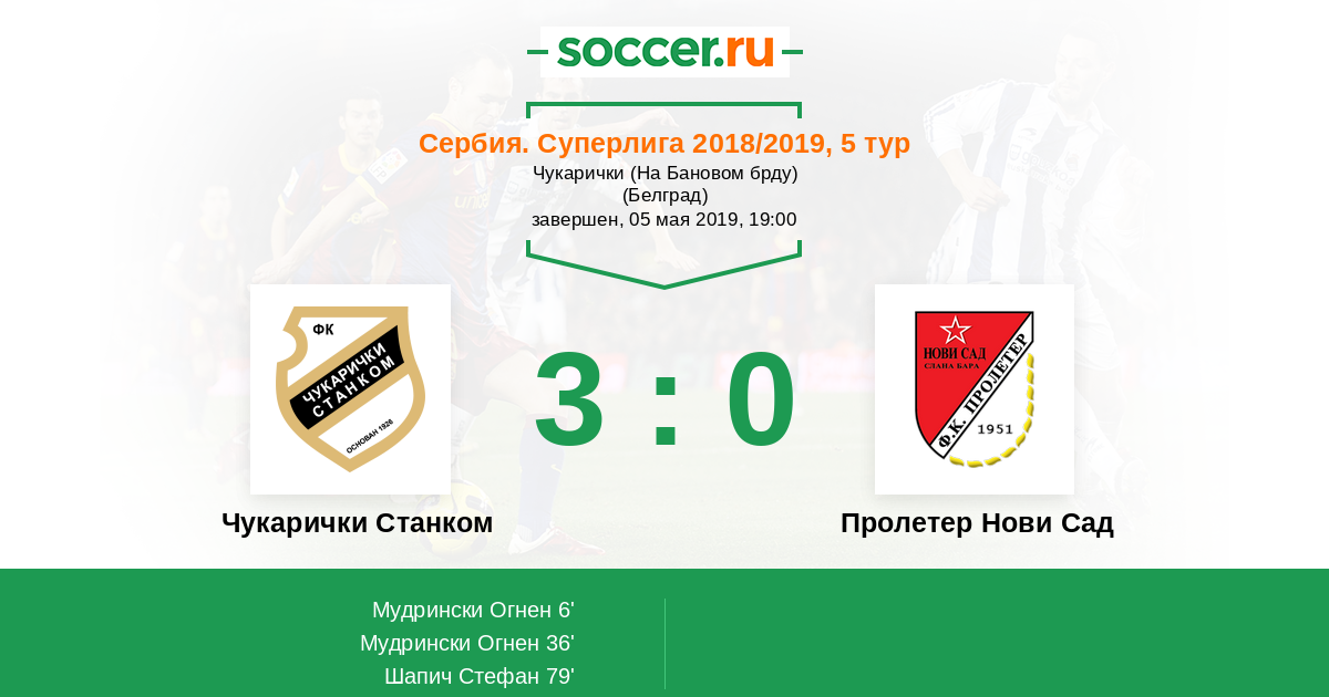 Протокол матча Чукарички Станком против Пролетер Нови Сад