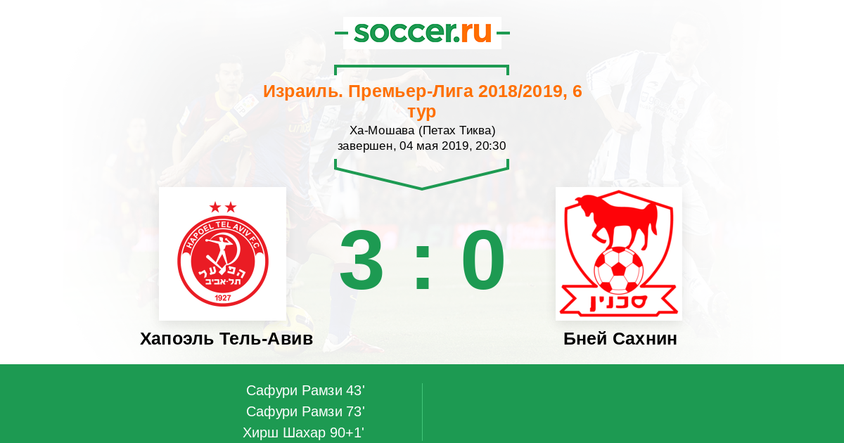 Протокол матча Хапоэль Тель-Авив против Бней Сахнин