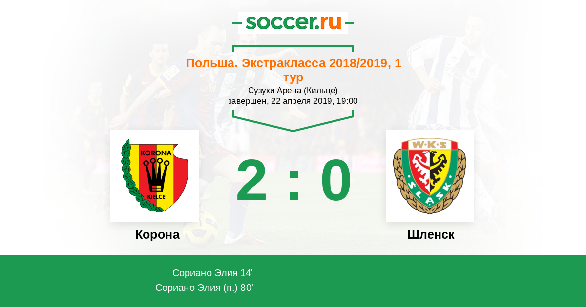 Протокол матча Корона против Шленск
