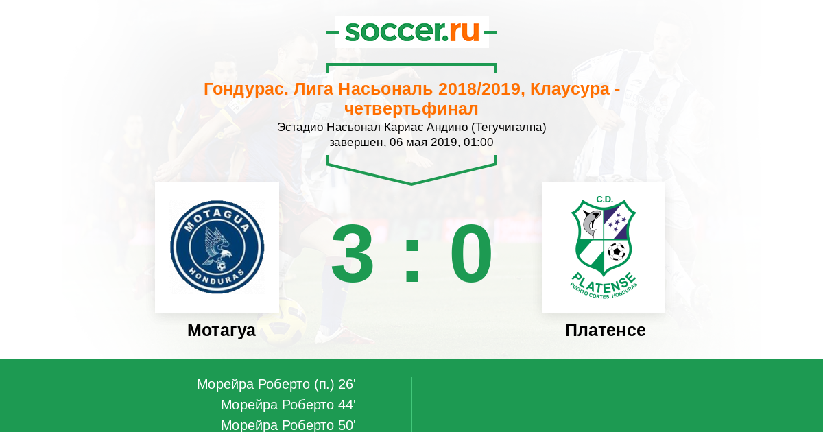 Протокол матча Мотагуа против Платенсе