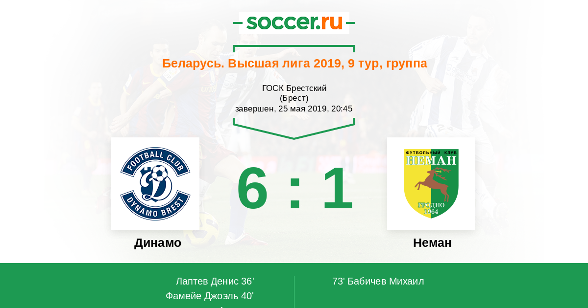 Протокол матча Динамо против Неман