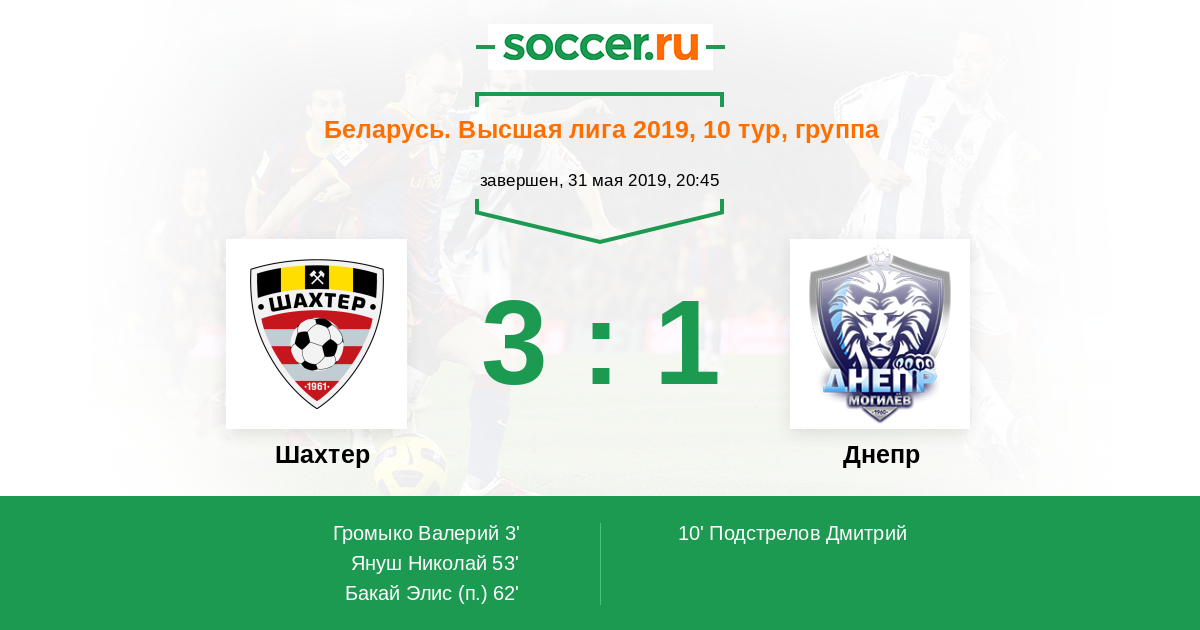 Протокол матча Шахтер против Днепр