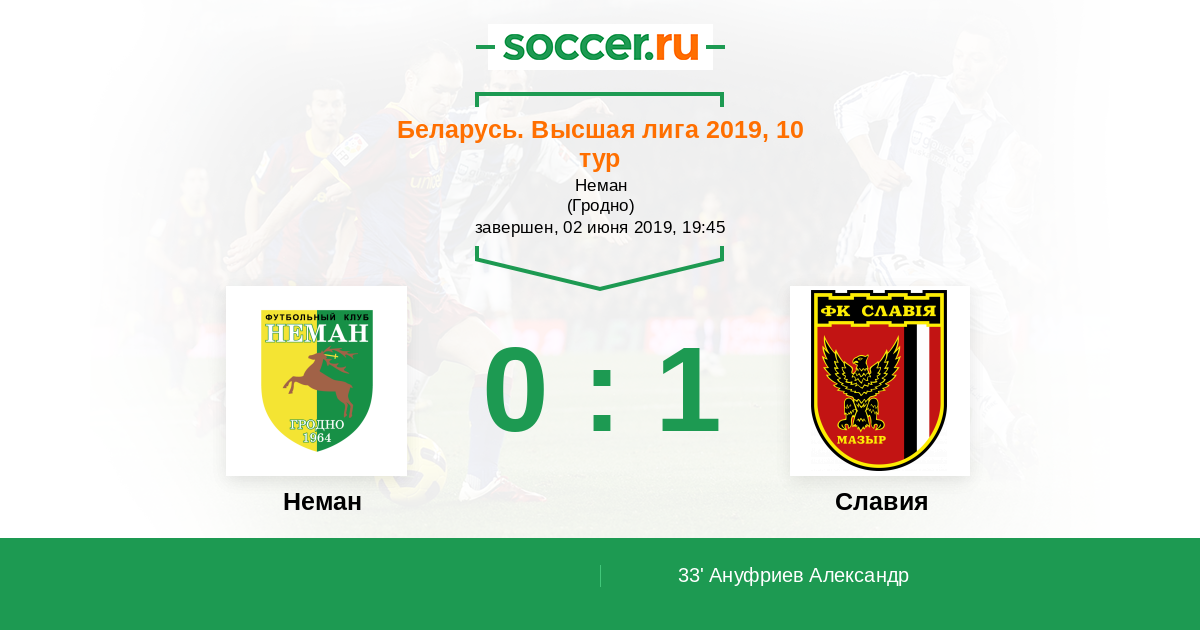 Протокол матча Неман против Славия