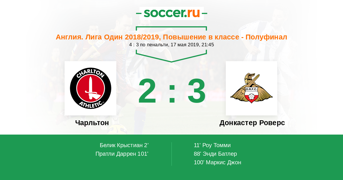 Протокол матча Чарльтон против Донкастер Роверс