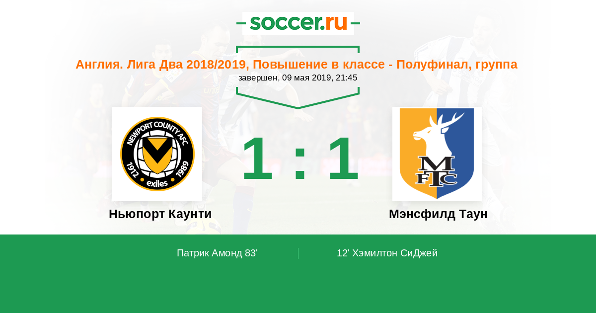 Протокол матча Ньюпорт Каунти против Мэнсфилд Таун