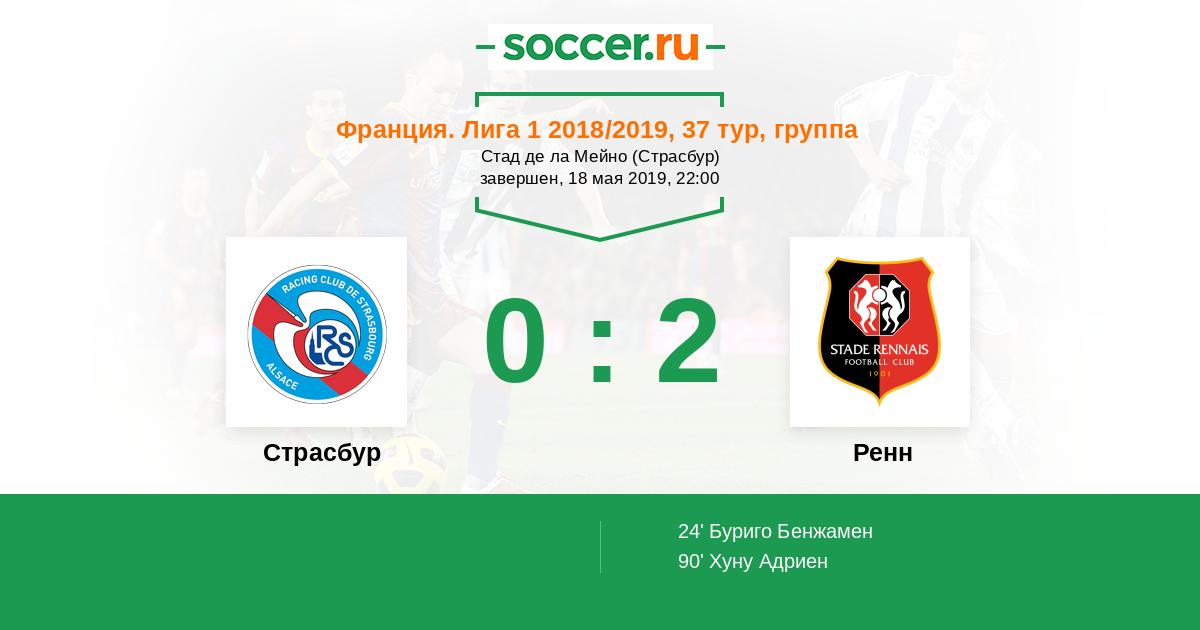 Протокол матча Страсбур против Ренн