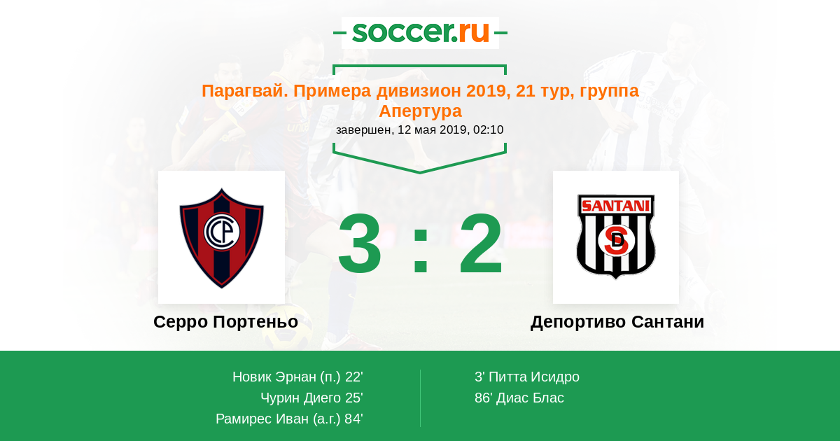Протокол матча Серро Портеньо против Депортиво Сантани
