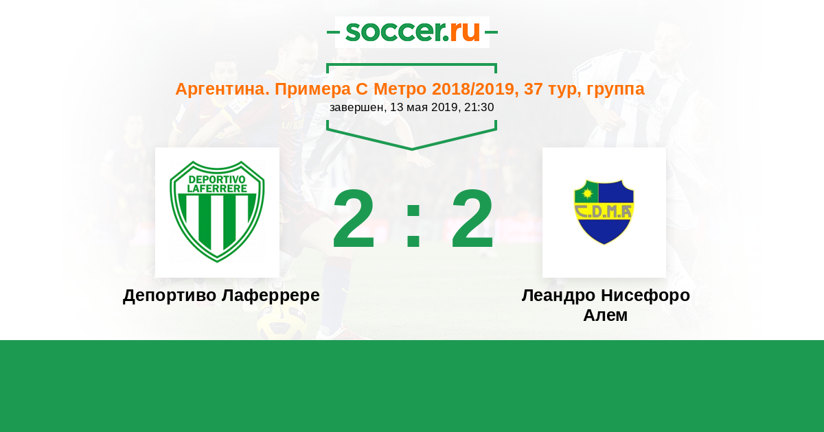 Аргентина. Примера С Метро 31.03.2018 Депортиво Лаферрере Логотип футбольный клуб Депортиво Лаферрере 1:1 Логотип футбольный клуб Леандро Нисефоро Алем (Буэнос-Айрес) Леандро Нисефоро Алем