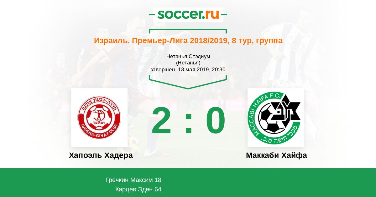 Протокол матча Хапоэль Хадера против Маккаби Хайфа