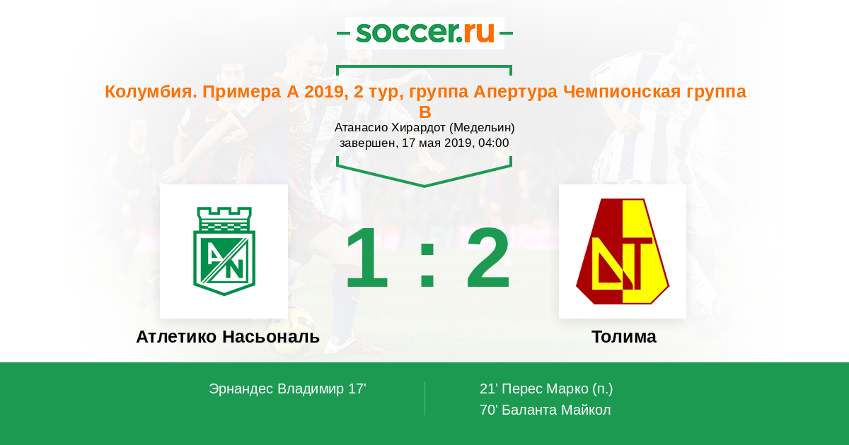 70' (1:2) Баланта Майкол (25) (Карраскал Рафаэль (14))