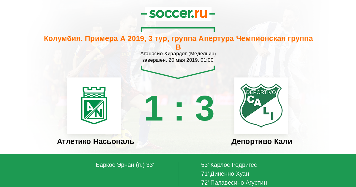 Протокол матча Атлетико Насьональ против Депортиво Кали
