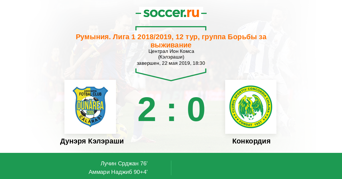 Протокол матча Дунэря Кэлэраши против Конкордия