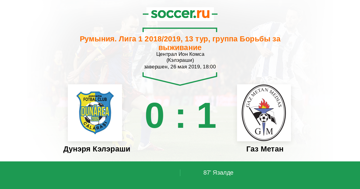 Протокол матча Дунэря Кэлэраши против Газ Метан