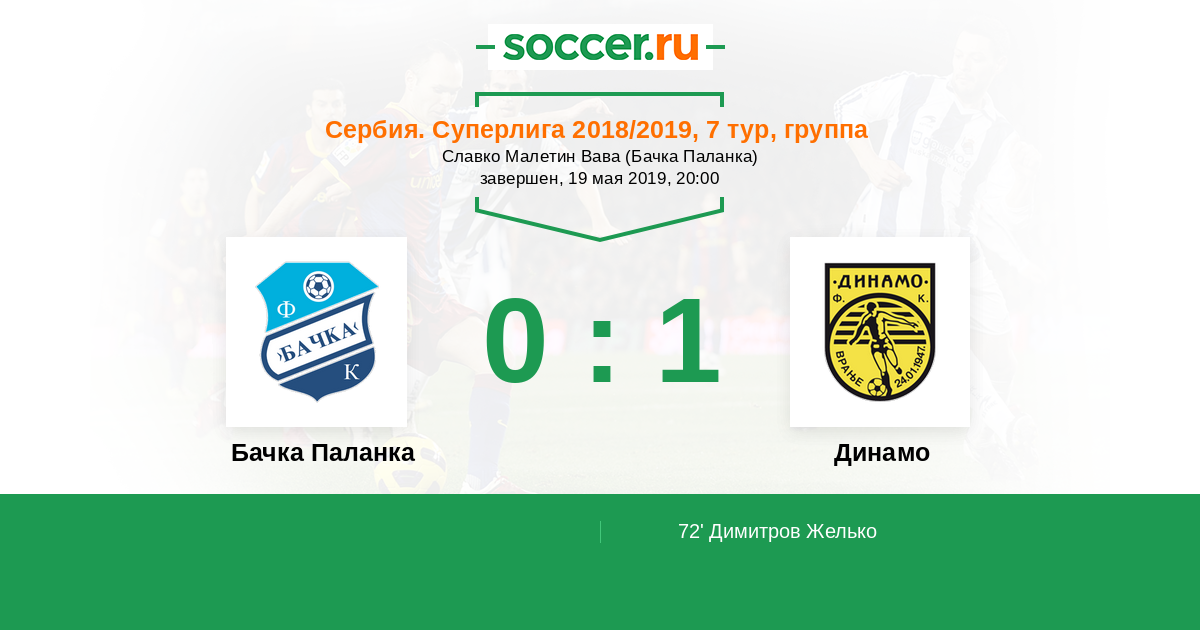 Протокол матча Бачка Паланка против Динамо