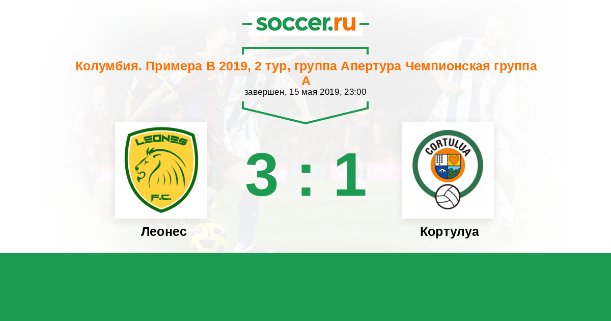 Колумбия. Примера B 30.05.2019 Кортулуа Логотип футбольный клуб Кортулуа 3:0 Логотип футбольный клуб Леонес (Итагуи) Леонес