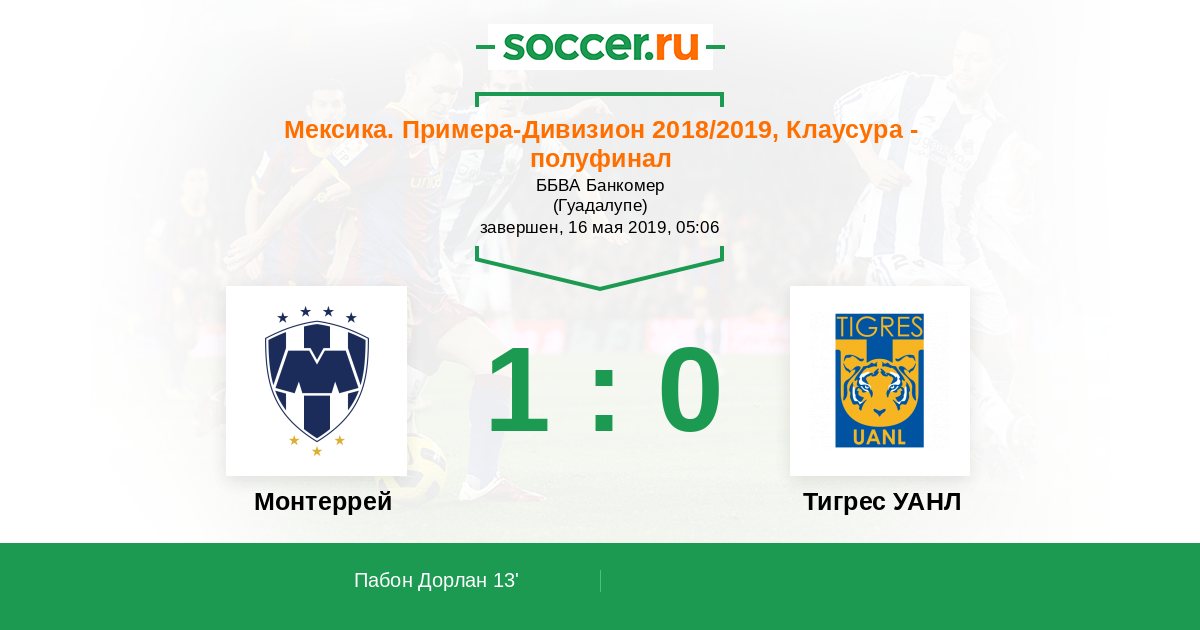 Протокол матча Монтеррей против Тигрес УАНЛ