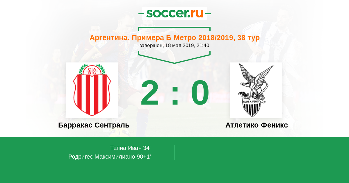 Протокол матча Барракас Сентраль против Атлетико Феникс