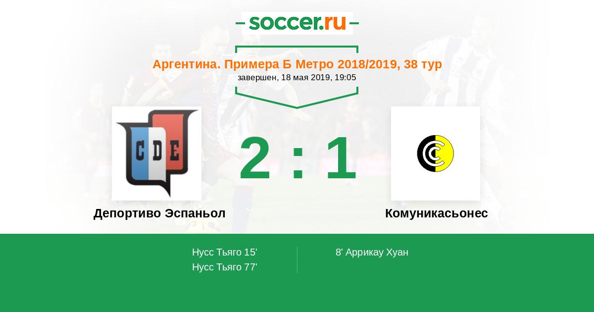 Протокол матча Депортиво Эспаньол против Комуникасьонес
