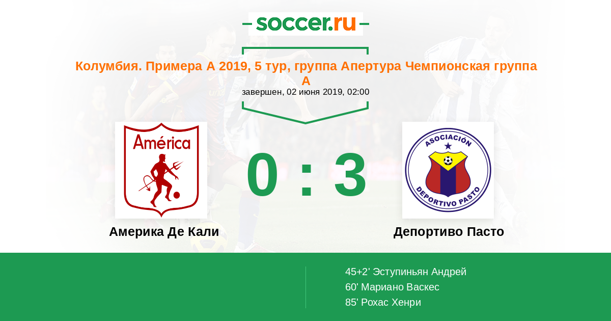 Протокол матча Америка Де Кали против Депортиво Пасто