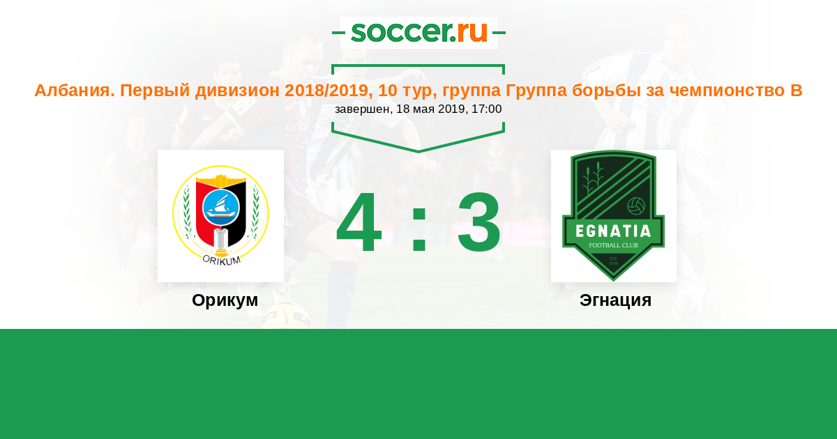 Албания. Первый дивизион 18.05.2019 Орикум Логотип футбольный клуб Орикум 4:3 Логотип футбольный клуб Эгнация (Рогожина) Эгнация