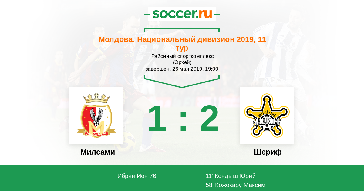 Протокол матча Милсами против Шериф