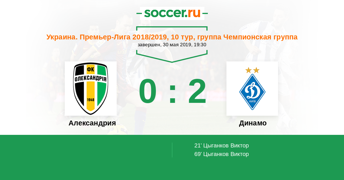 Протокол матча Александрия против Динамо