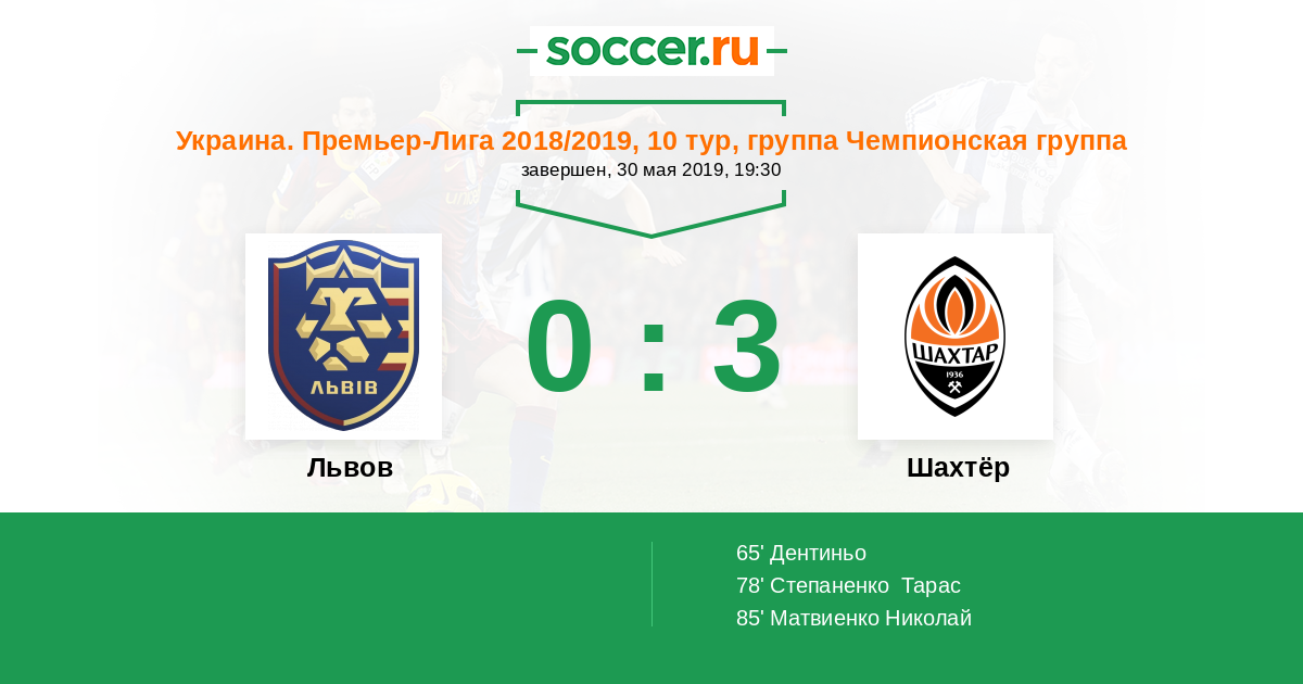 Протокол матча Львов против Шахтёр