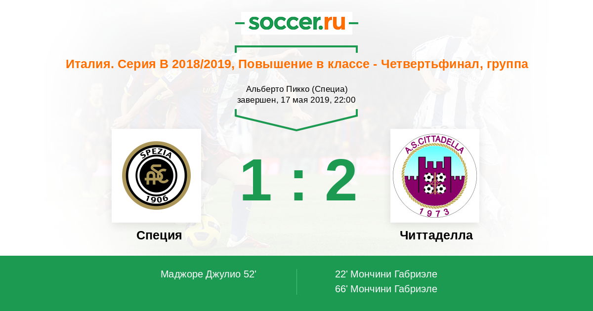 Протокол матча Специя против Читтаделла