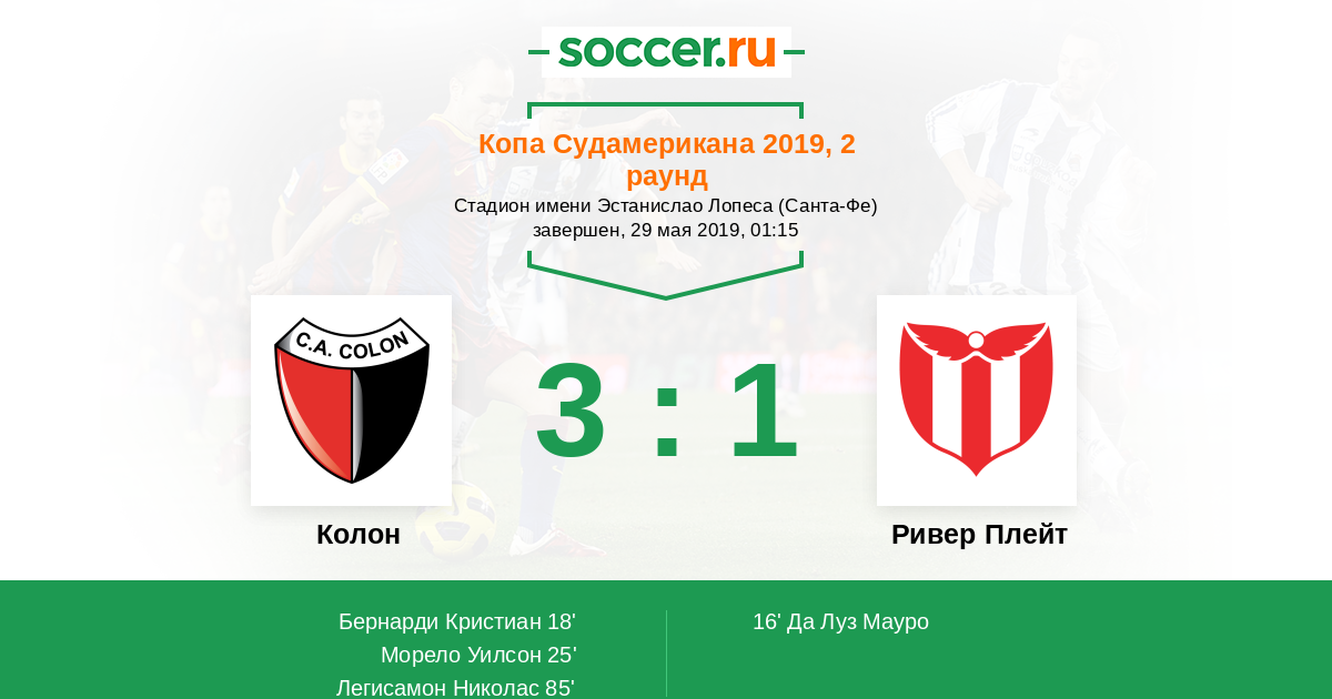 85' (3:1) Легисамон Николас (7) (Родригес Луис Мигель (10))