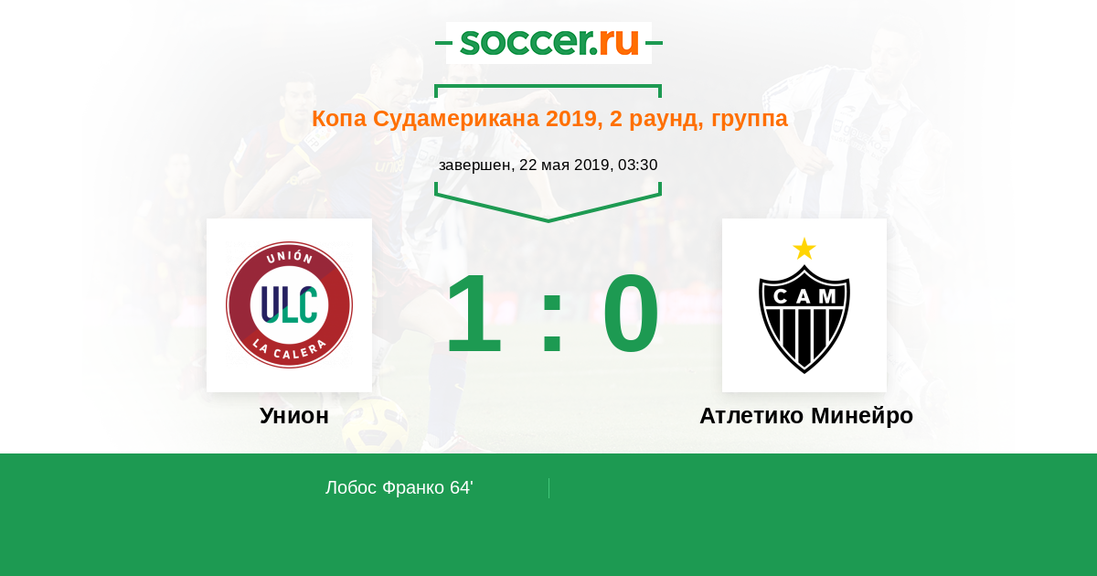 Протокол матча Унион против Атлетико Минейро