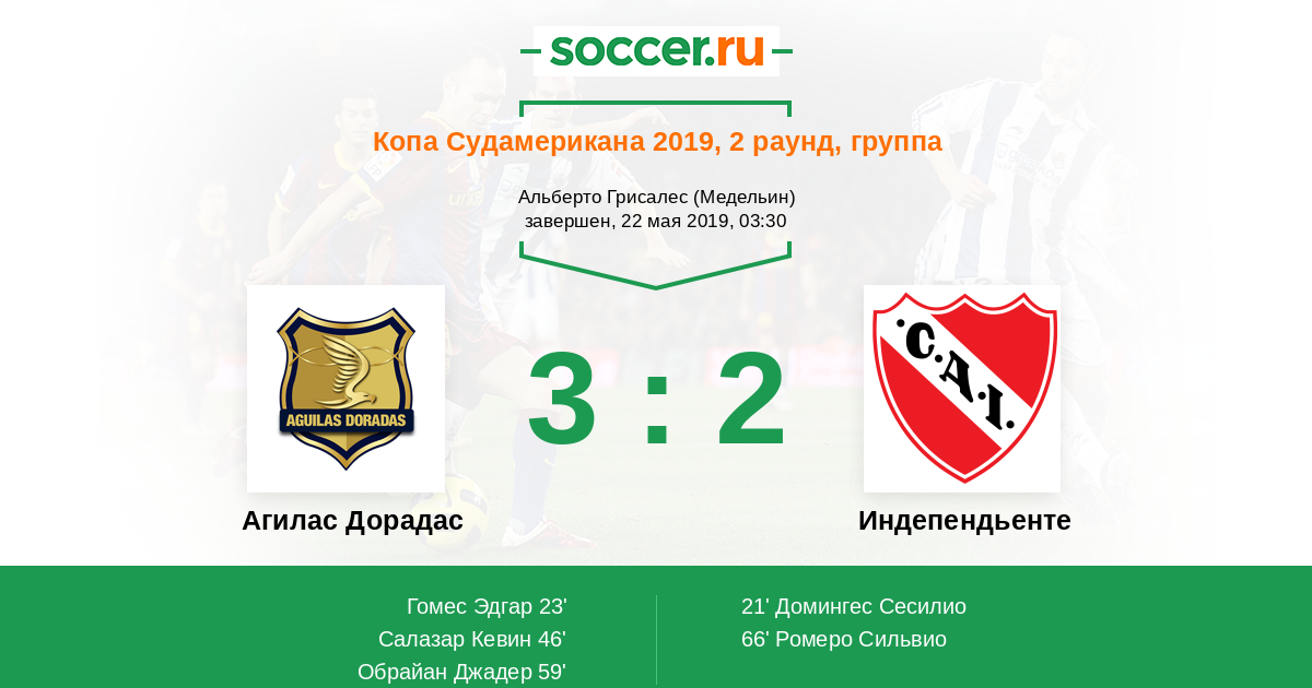 Протокол матча Агилас Дорадас против Индепендьенте
