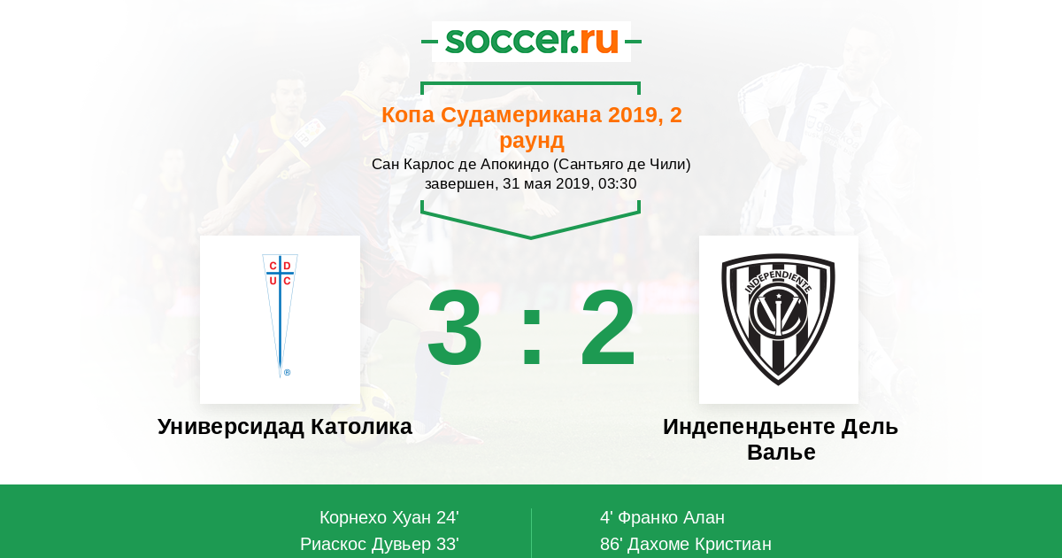 Протокол матча Универсидад Католика против Индепендьенте Дель Валье