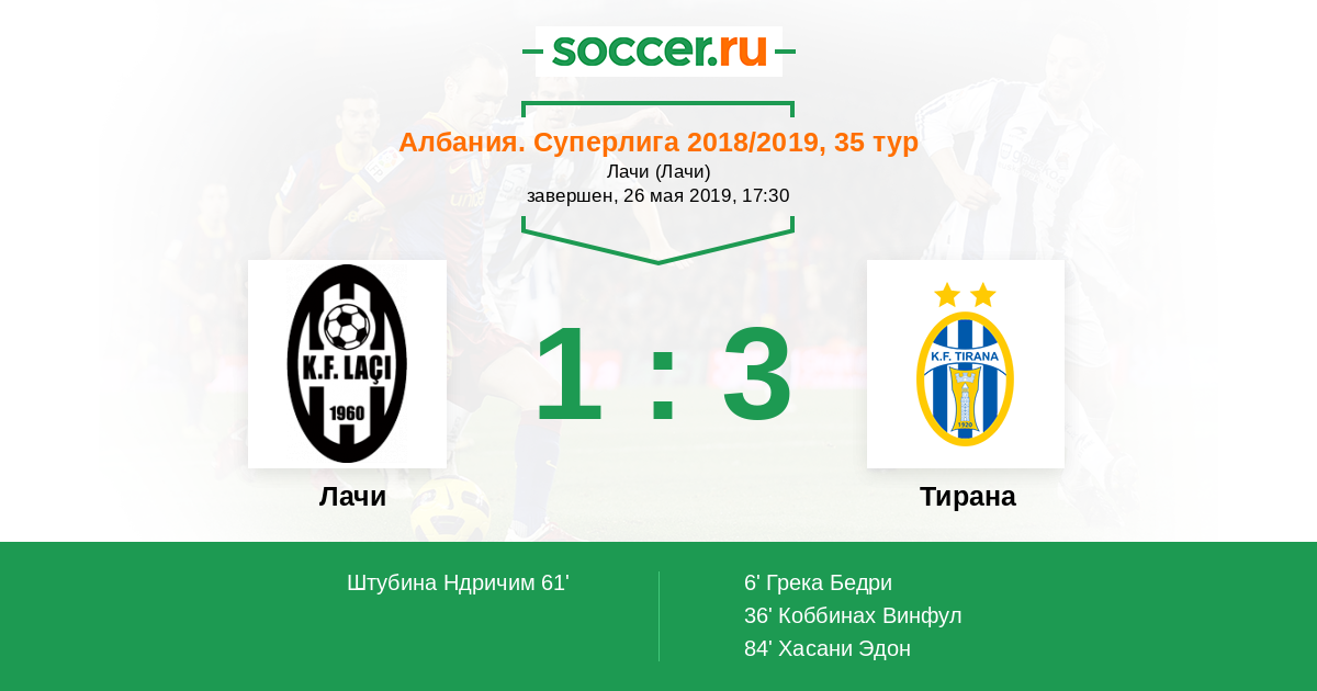 Протокол матча Лачи против Тирана