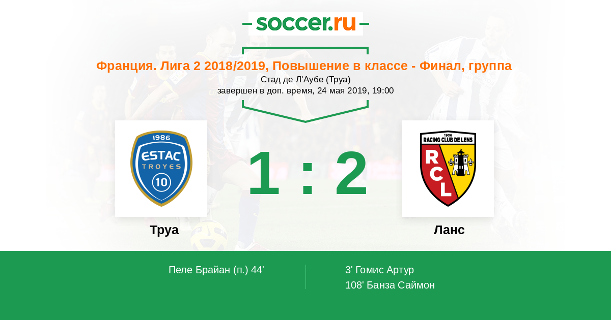 Протокол матча Труа против Ланс