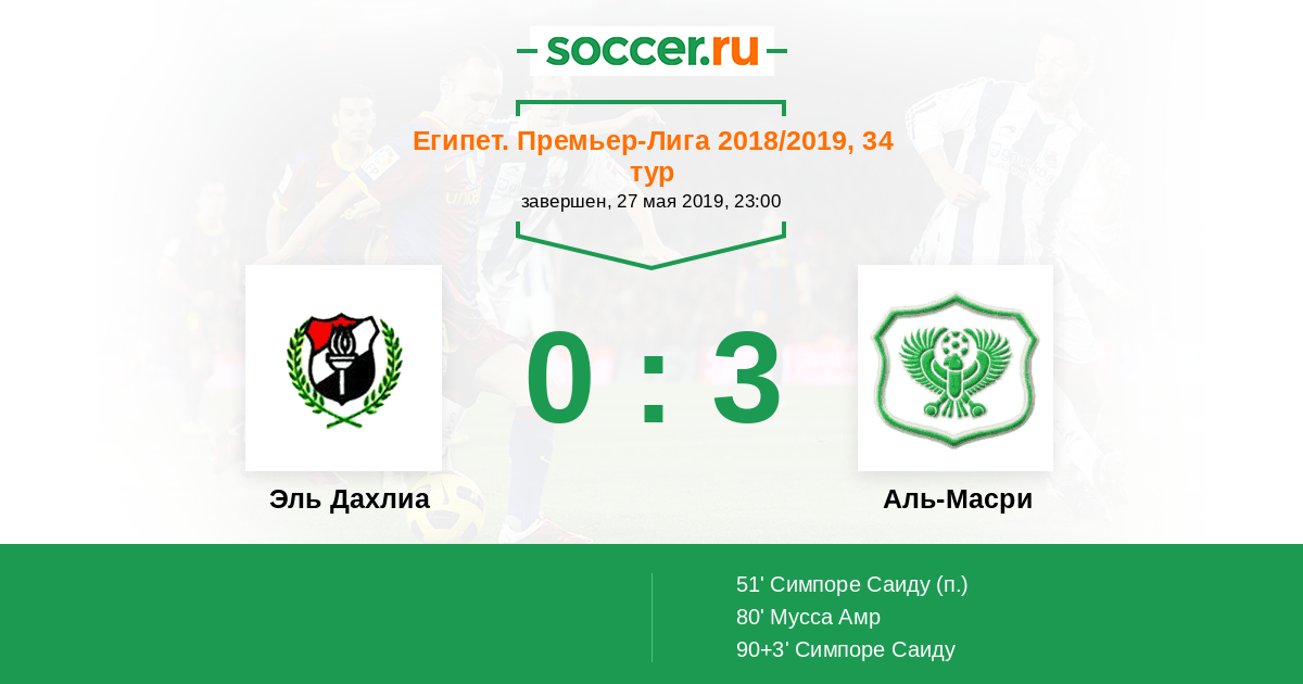 Протокол матча Эль Дахлиа против Аль-Масри