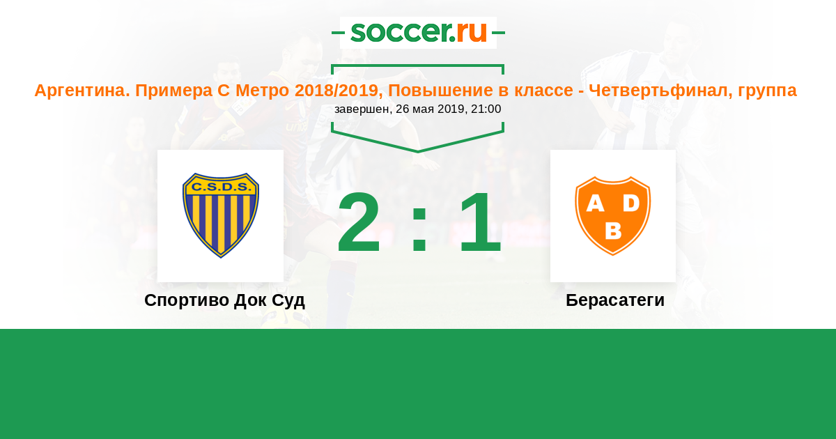 Аргентина. Примера С Метро 27.06.2021 Берасатеги Логотип футбольный клуб Берасатеги (Буэнос-Айрес) 1:2 Логотип футбольный клуб Спортиво Док Суд (Буэнос-Айрес) Спортиво Док Суд