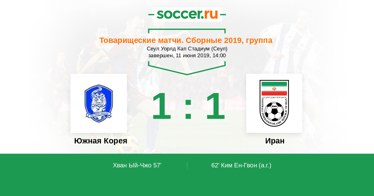 62' (1:1) Автогол Ким Ен-Гвон
