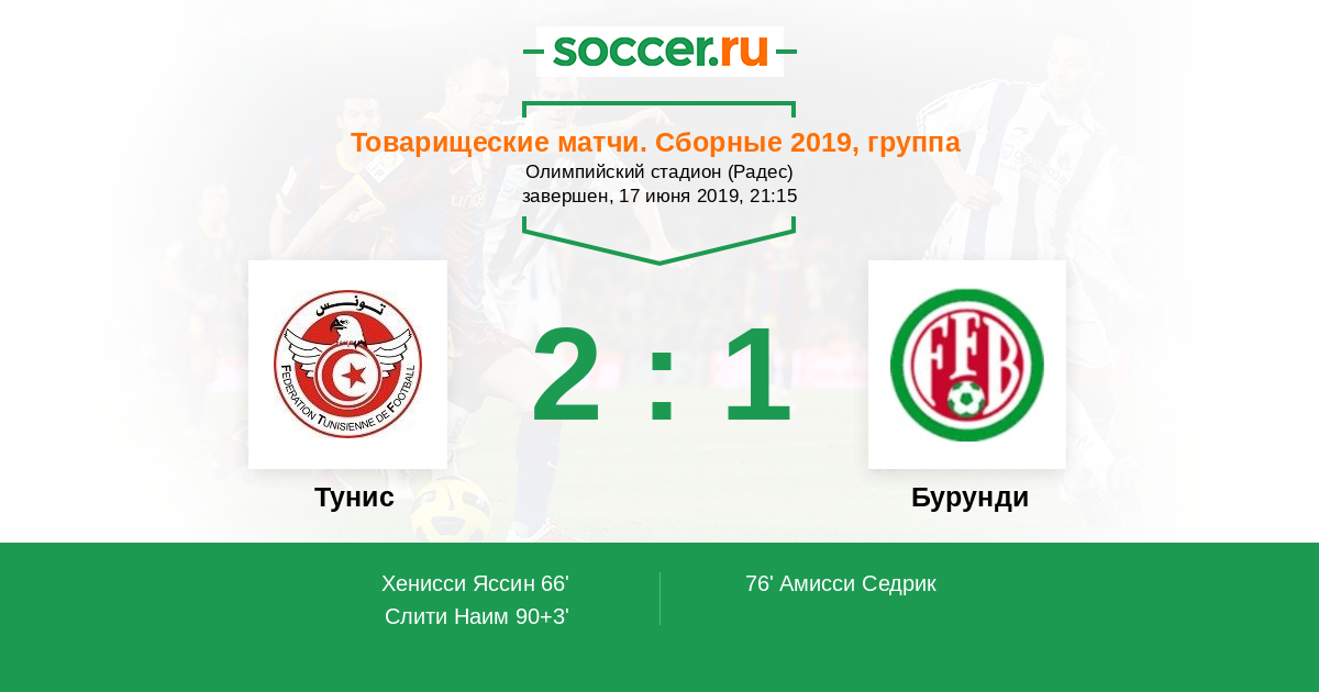 Протокол матча Тунис против Бурунди