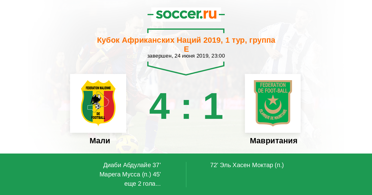 Протокол матча Мали против Мавритания