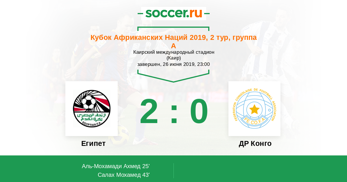 Протокол матча Египет против ДР Конго