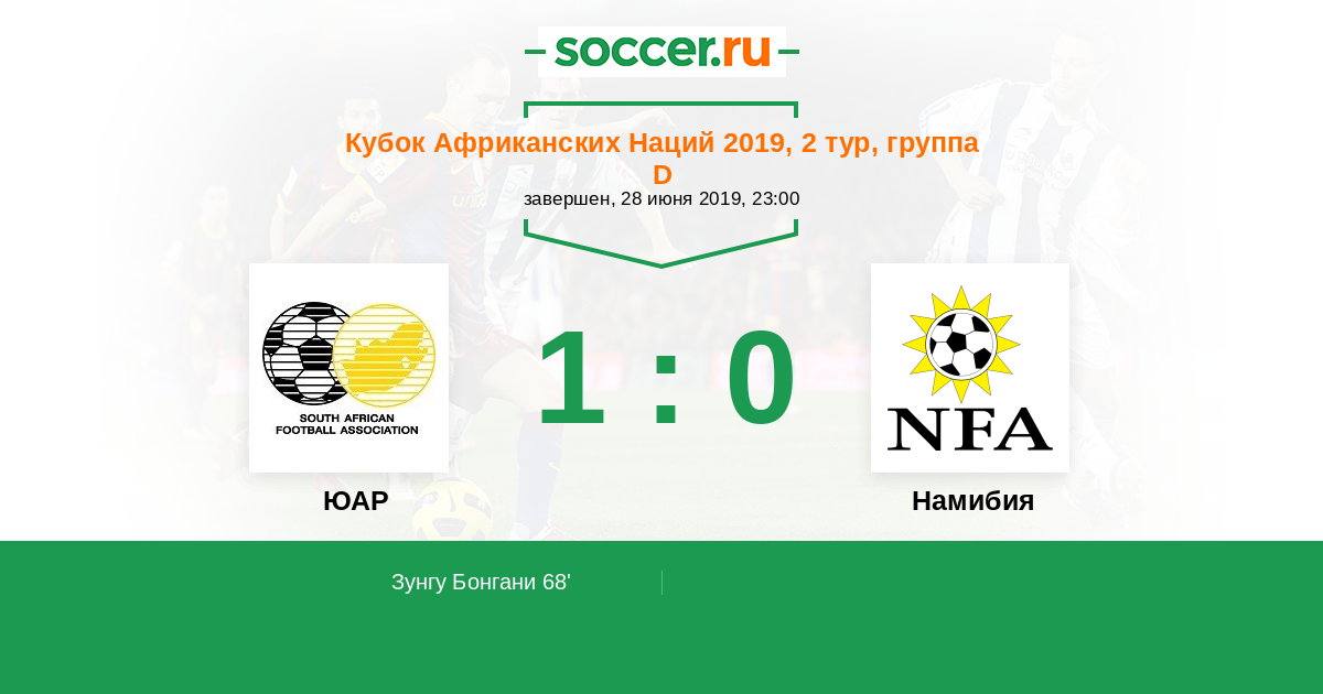 Протокол матча ЮАР против Намибия