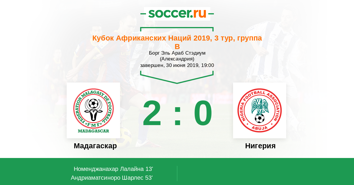 Протокол матча Мадагаскар против Нигерия