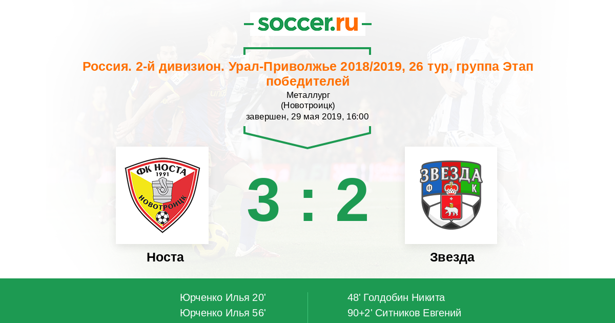 Протокол матча Носта против Звезда