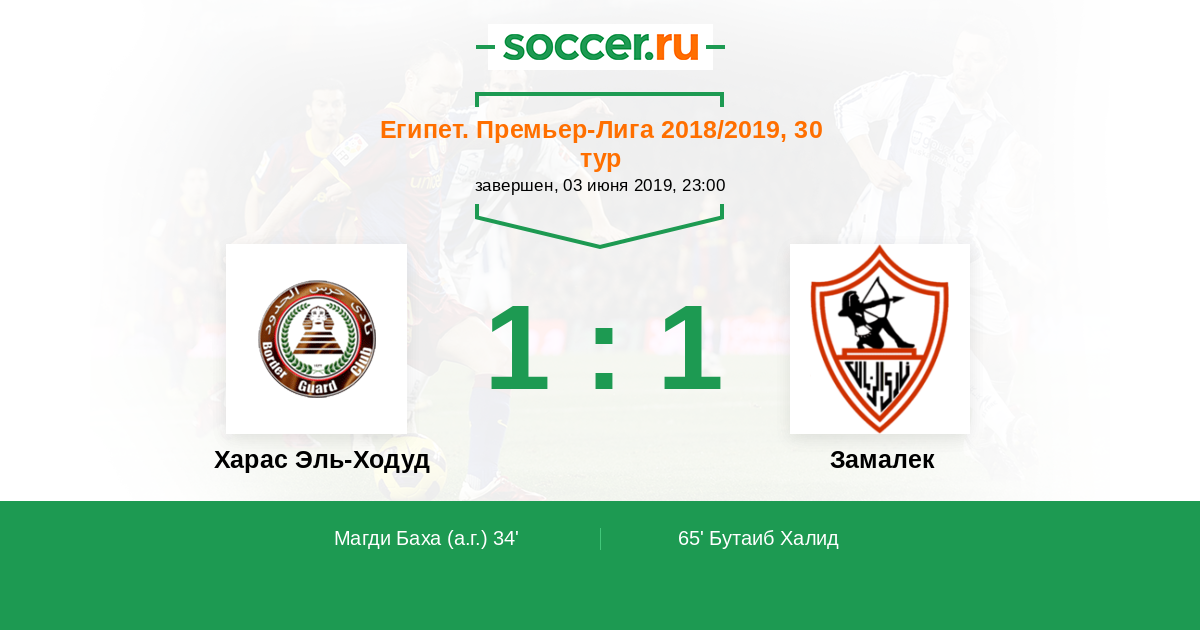 Протокол матча Харас Эль-Ходуд против Замалек