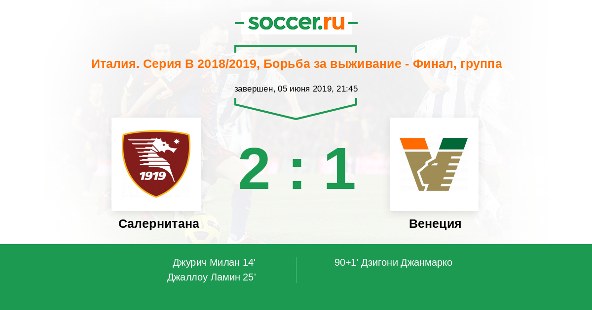 Протокол матча Салернитана против Венеция