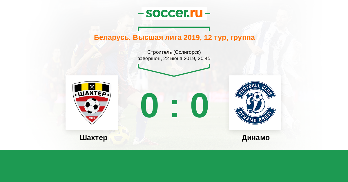 Беларусь. Высшая лига 26.06.2021 Шахтер Логотип футбольный клуб Шахтер (Солигорск) 1:1 Логотип футбольный клуб Динамо (Брест) Динамо
