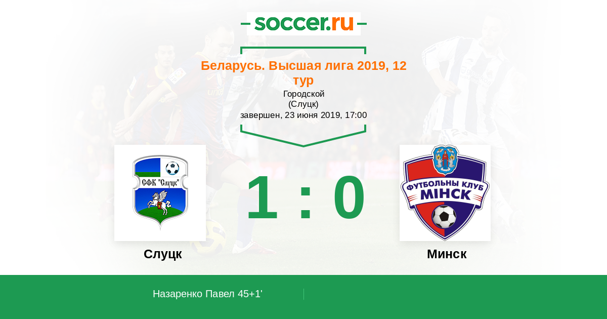 Протокол матча Слуцк против Минск